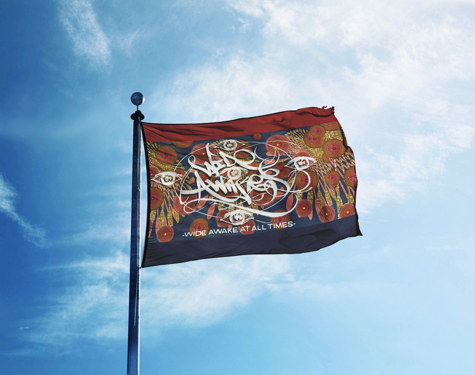 Flags For Our Future José Parlá’s work is an interpretation of the chaos and movement of metropolitan life. The artist paints swift fragments of city living in large scale multimedia works. Using paint, photography, video, and murals as mediums, Parla aims to convey the degradation and renewal of urban environments. Abstract washes of deep color and radial strokes of paint are layered several times on canvases where glimpses of printed material peek through from below. He draws inspiration from music, calligraphy, dance, architecture, and advertisements in these works, and what results are pieces that capture a sense of transience and challenge ideas of identity and how we define an environment. His work has been exhibited in institutions around the globe like The SCAD Museum of Art, Savannah, and The National Museum of Fine Arts, Cuba. The artist currently lives and works in New York city.